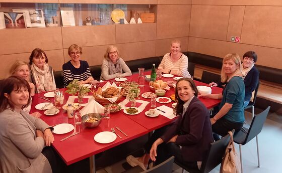 Bei Kuchen, Kaffee, Aufstrichen und Salaten erzählte jede, wie es ihr mit der Arbeit, den Vorgesetzten und vor allem mit dem Stundenkontingent geht. Interessant ist auch, dass vier Damen aus unserer Runde eigentlich schon in Pension sind oder sein könnten und trotzdem weiterhin angestellt sind und/oder in den Pfarrbüros aushelfen.