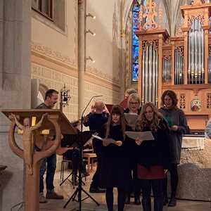 Und dann, am 24. Dezember ist es soweit: Einstimmen, ruhig werden, der besonderen Atmosphäre dieses Tages nachspüren, so beginnen wir den FaGoDi zur Weihnacht immer mit dem "Zuwisinga". Dieses Mal mit dem Versuch, alle Mitfeiernden mehr zum Mitsingen einzuladen. Dafür gesellte sich der Chor etwas weiter nach vor, und voll Freude konnte ich feststellen, dass wir wirklich gesanglich ordentlich unterstützt wurden - von Kindern, Eltern, Großeltern - ein wundervolles Miteinander!