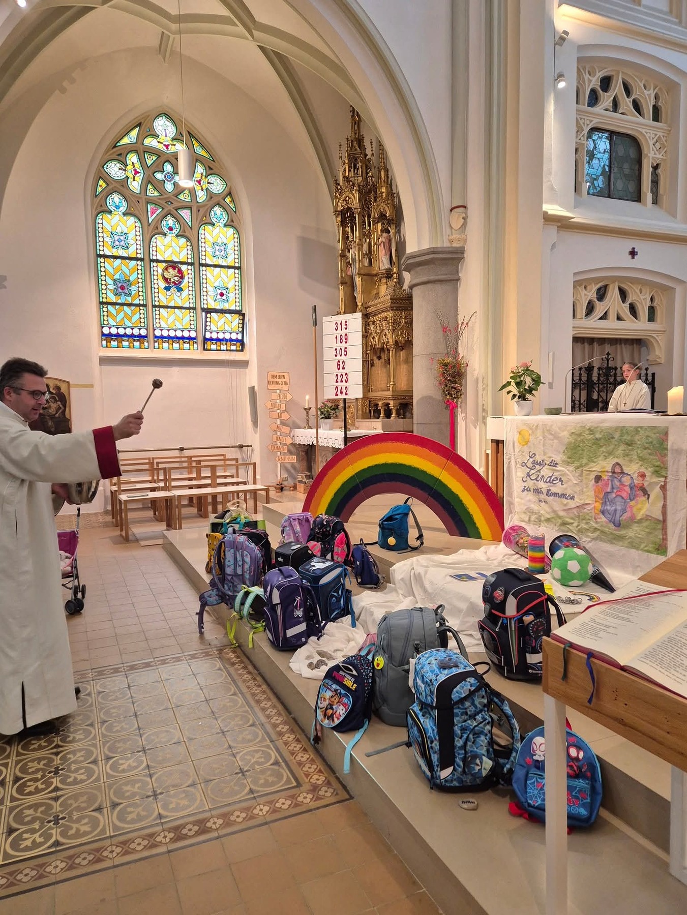 Passend zum neuen Schuljahr wurden in der Feier auch viele Kindergarten- und Schultaschen gesegnet, damit Gottes Segen die Kinder auf ihren Wegen stets begleitet.