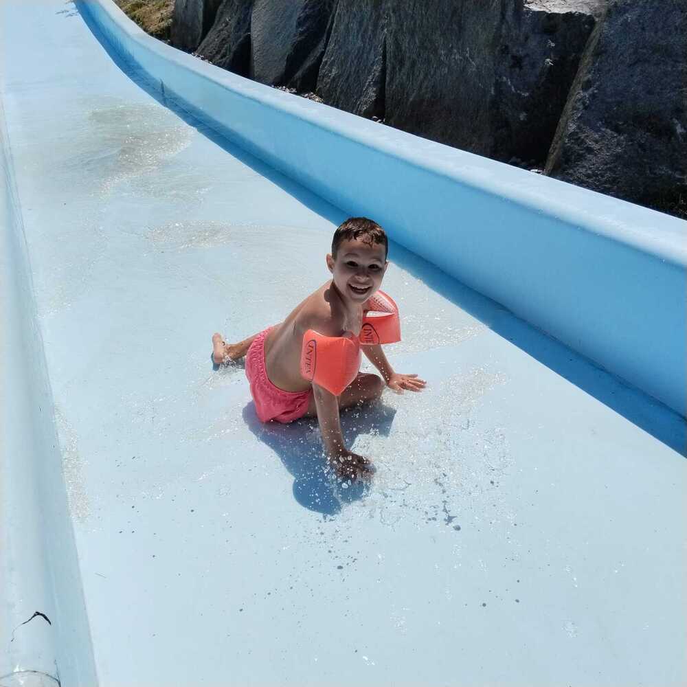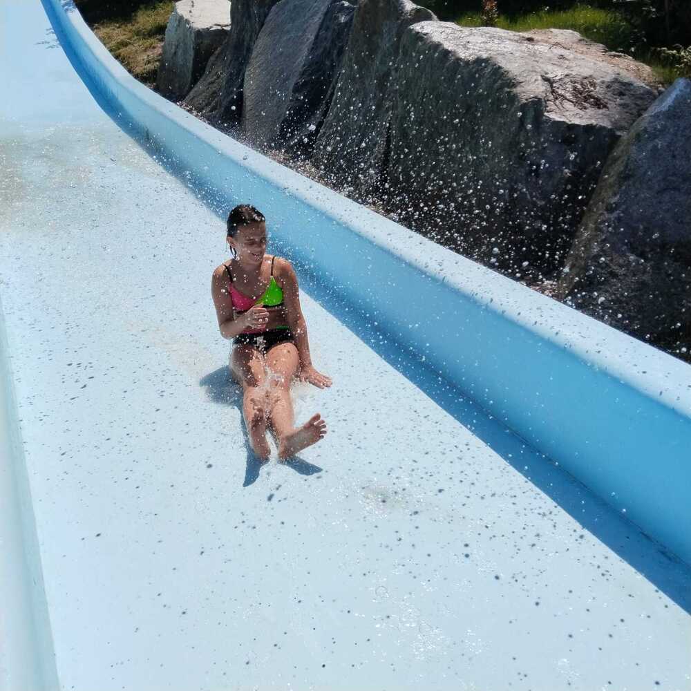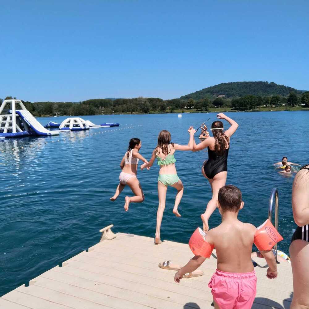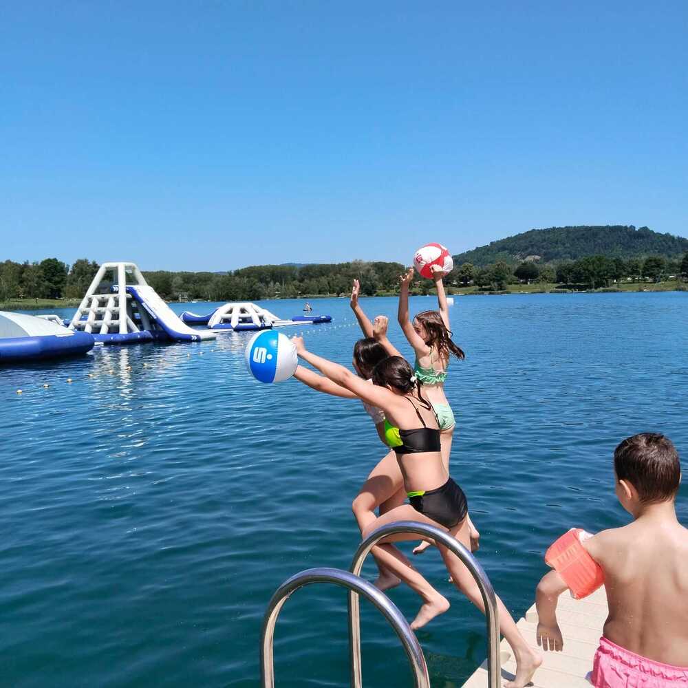 Dort erwartete uns ein breit gefächertes Angebot an Möglichkeiten zum Schwimmen und Spaßhaben: der Aquapark, die Wasserrutsche, der Steg zum Hineinspringen, das Plantschen, Fischesuchen, gemeinsame Spiele oder einfach kleine Erholungspausen auf der Picknickdecke – das alles gehörte zu den zahlreichen Highlights des Tages.