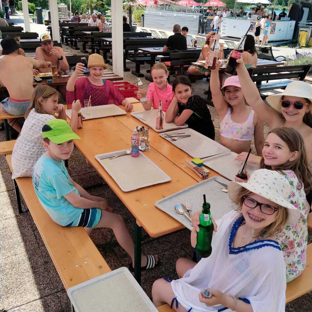 Wer sich viel an der frischen Luft bewegt, bekommt natürlich auch Hunger! Doch auch dafür war bestens gesorgt: Am Badebuffet fand jede und jeder rasch eine passende Stärkung und ein kühles Getränk. Und bevor wir uns – viel zu schnell – wieder auf den Rückweg nach Wels machten, staunten wir nicht schlecht: Einige Kids hatten nicht einmal Zeit für ein Eis, weil es einfach viel mehr Spaß machte, noch mit den anderen im See zu bleiben.